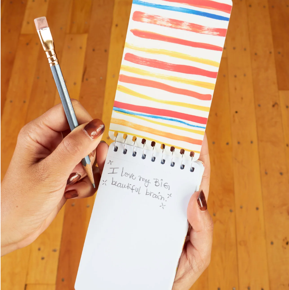 A bold reminder that some days, the toughest battles happen in our own heads. The Preparing for a Busy Day Notebook pairs raw honesty with a splash of colorful, abstract art - making it the perfect space to capture thoughts, sketches, or to-dos.