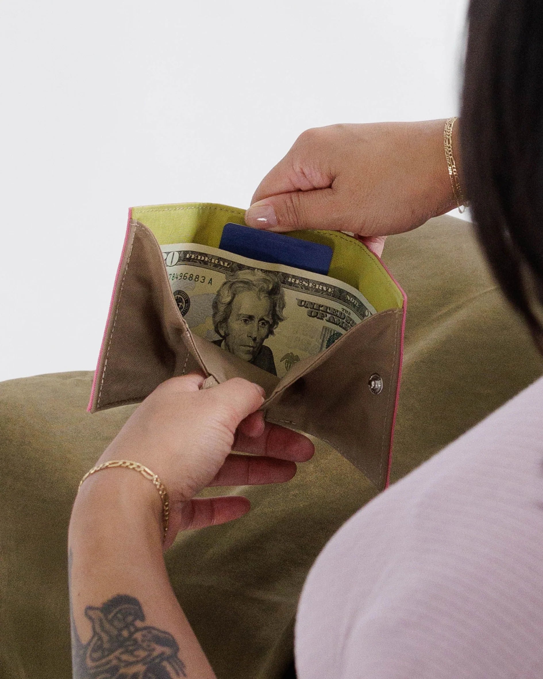 A classic trifold wallet made from our recycled heavyweight nylon with a snap closure.